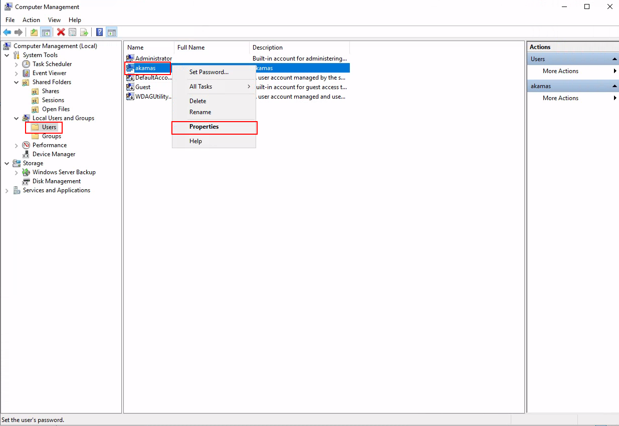 Select the appropriate user, right-click on it, and then select "Properties"