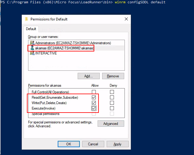 winrm configSDDL default. An ACL dialog window will open;Use the "Add" button to add the appropriate user and then select "Read", "Write" and "Execute" permissions.