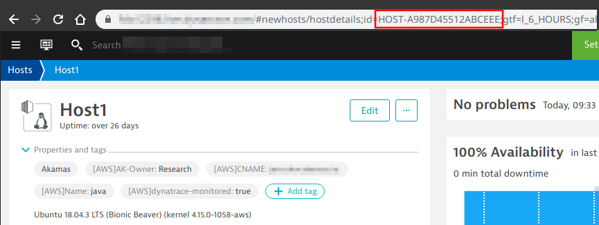 Let’s assume you want to **map by id** your Dynatrace entity, you can find the id in the URL bar of a Dyntrace dashboard of the entity: