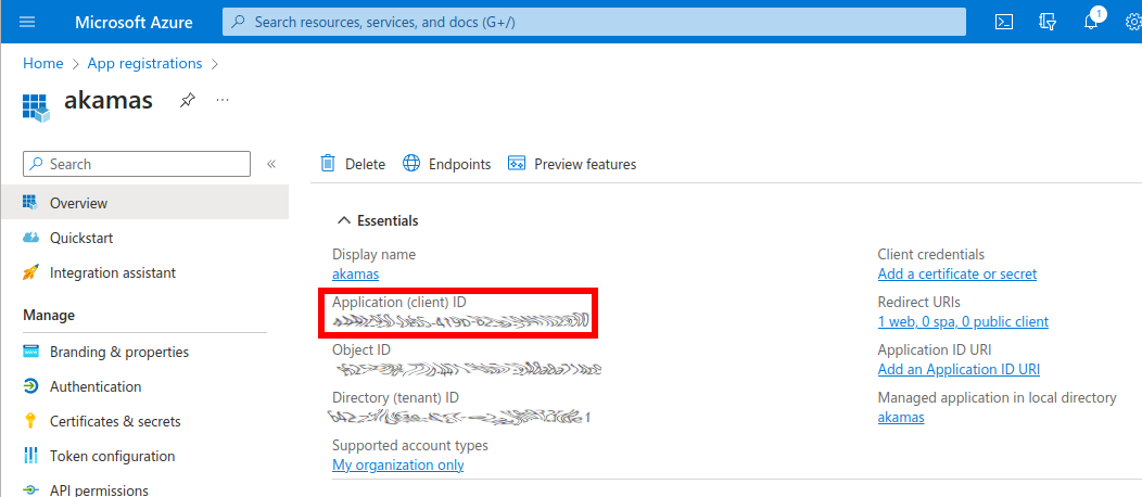 * "Client ID": populate with the "Application (client) ID" from the app's overview page