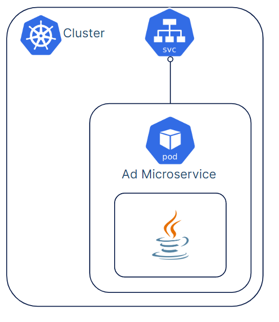 <figure><img src="https://4130935629-files.gitbook.io/~/files/v0/b/gitbook-x-prod.appspot.com/o/spaces%2FhQQ7Gjkum9VLR9lROXGD%2Fuploads%2Fgit-blob-51bd89e78ed511f1b4437fd78ad6e35a6e952227%2Fimage%20(1)%20(1)%20(1)%20(1).png?alt=media" alt="" width="273"><figcaption><p>Online Boutique Ad microservice deployment</p></figcaption></figure>