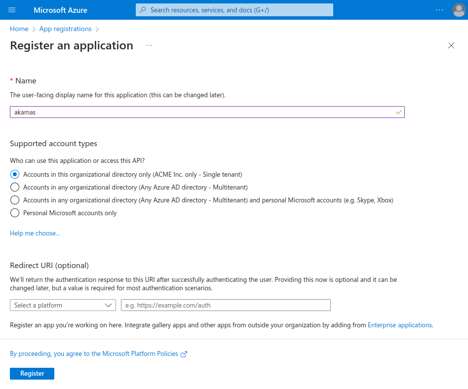​​Multiple Akamas instances can share a single app registration, meaning any AD user added to the registration can access all associated Akamas instances. To manage access with finer granularity, create a unique app registration for each Akamas instance.