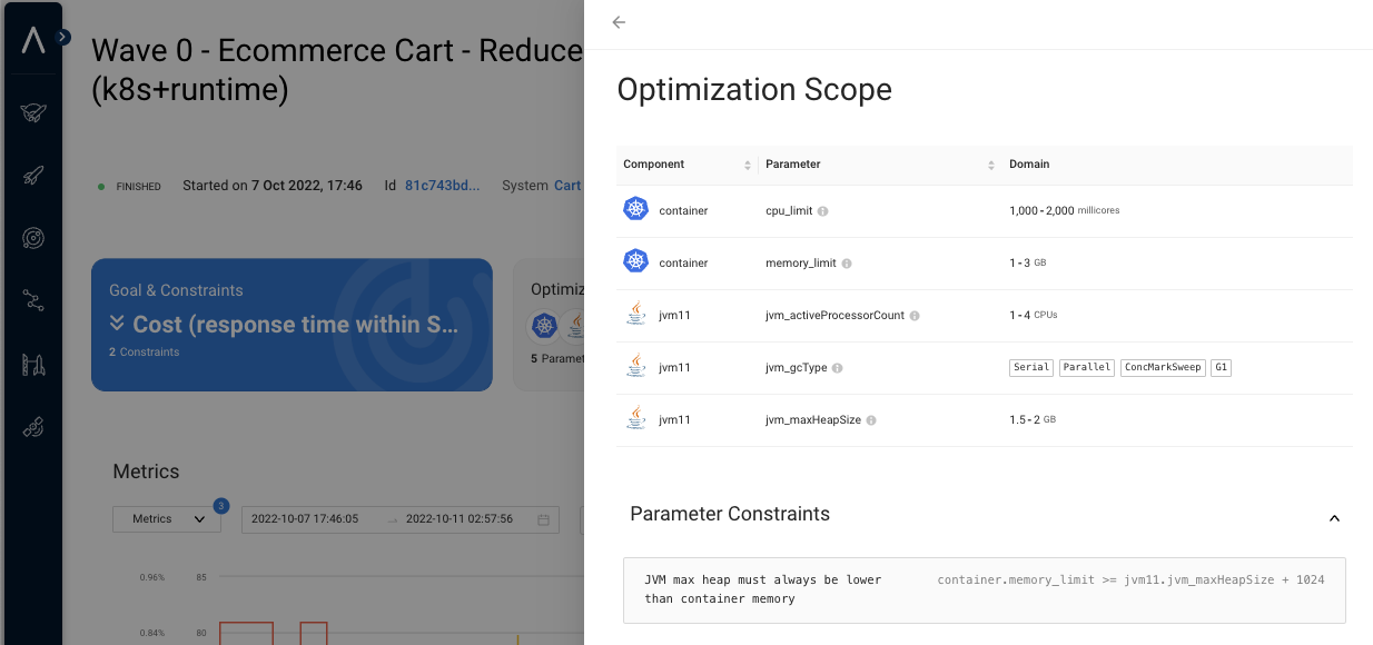 For each optimization study, the **optimization scope** is the set of parameters that Akamas can change to achieve the defined optimization goal.