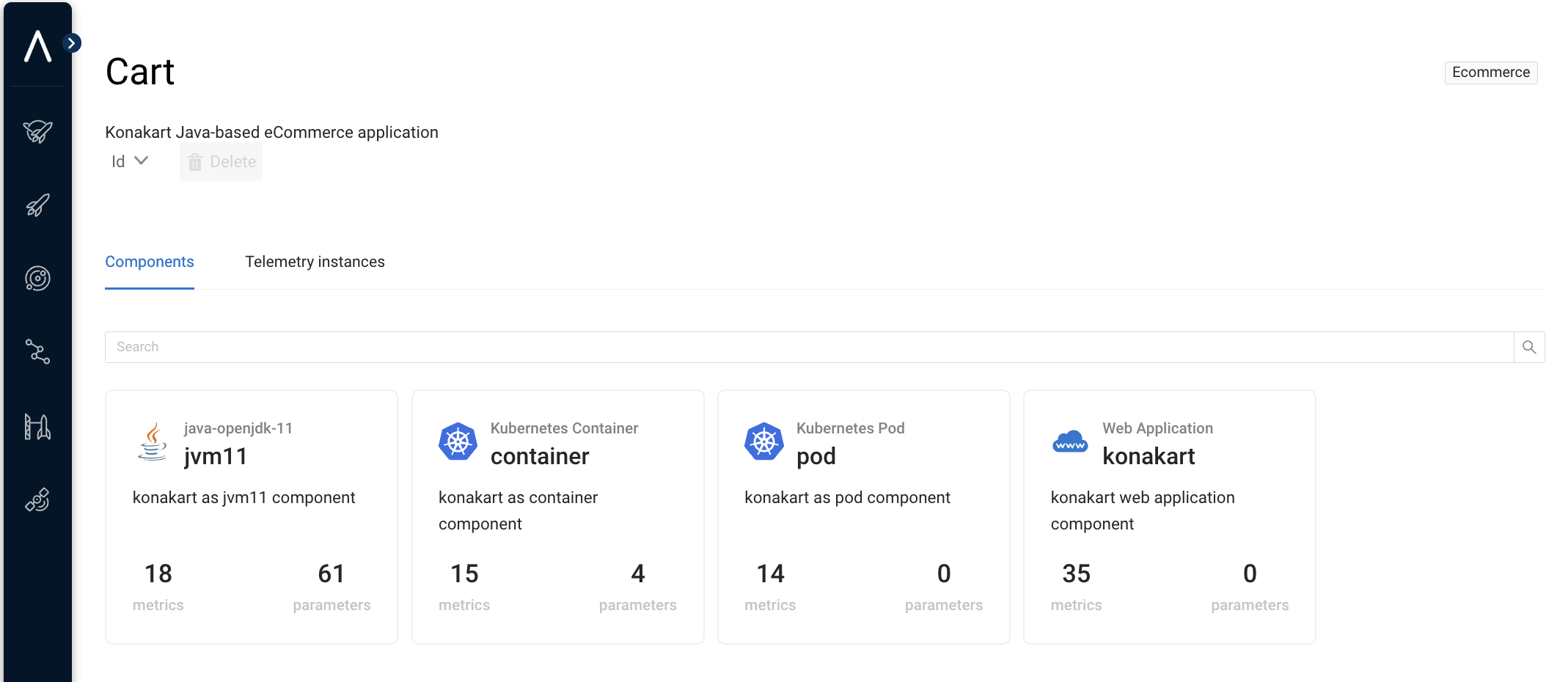 Notice that a component is a black-box definition of each entity involved in an optimization study, so detailed modeling of the entities being involved in the optimization is not required. The only relevant elements are the [*parameters*](https://docs.akamas.io/akamas-docs/reference/glossary/parameter) that are involved in the optimization and the [*metrics*](https://docs.akamas.io/akamas-docs/reference/glossary/metric) that are collected to evaluate the results of such an optimization.