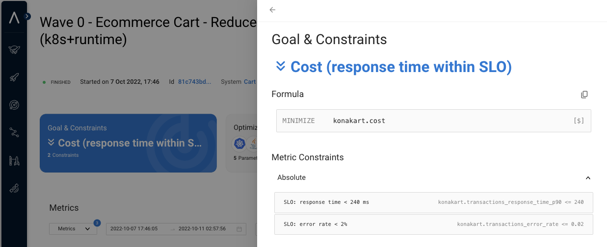 Goals and constraints are displayed in the Akamas UI when drilling down each optimization study.