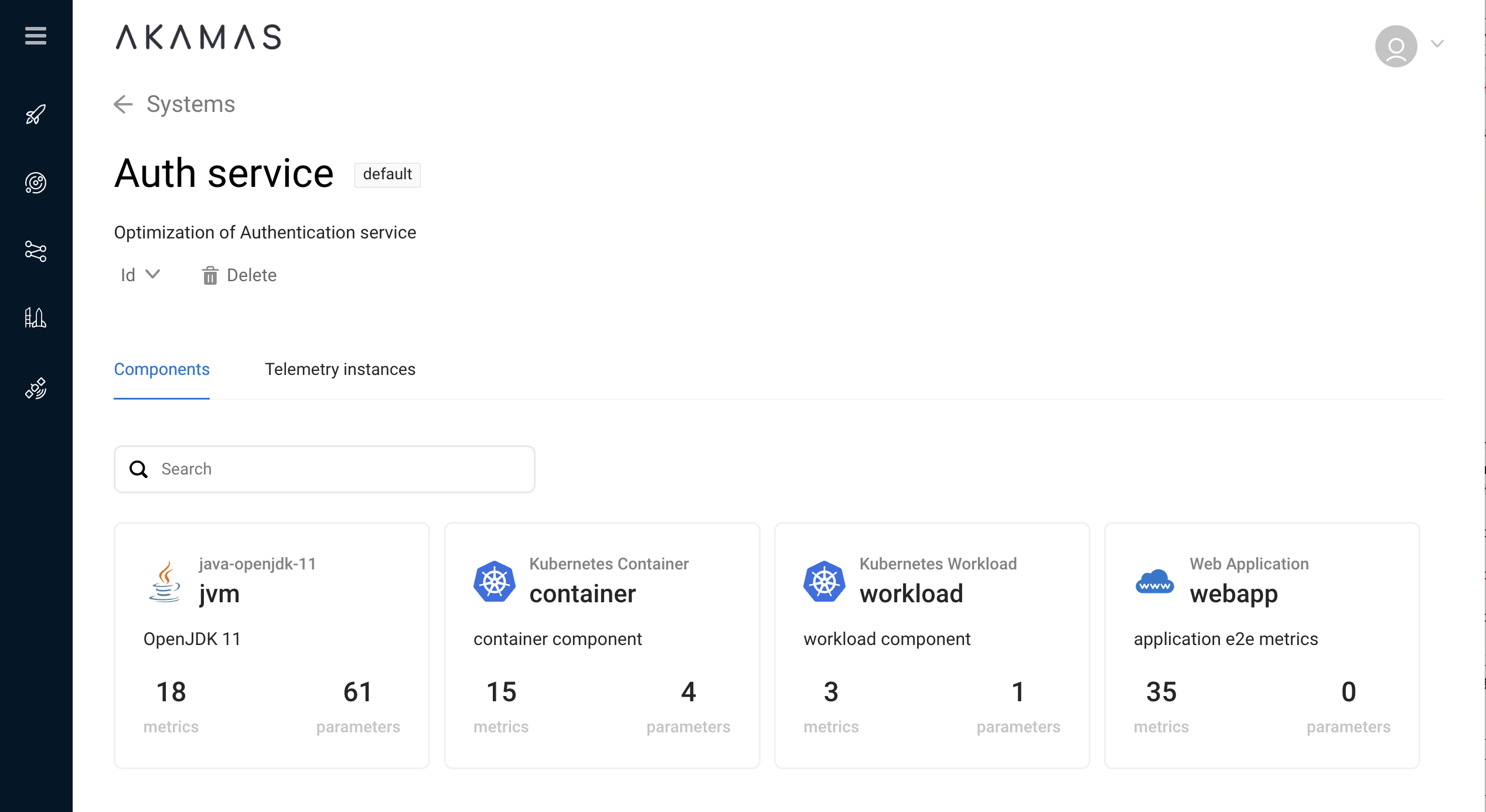 As you can see, the System is represented by several components, whose parameters and metrics you can explore: